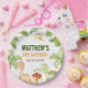 Watercolor Cute Dinosaur Greenery 3rd Birthday Paper Plate
