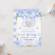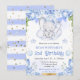 Watercolor Cute Elephant and Blue Roses Birthday Invitation