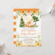 Watercolor Cute Floral Baby Fox design with beige and Yellow Summer Flowers, gold borders and gold glitter confetti with orange stripes background