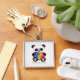 Watercolor Cute Panda With Rainbow Heart Key Ring