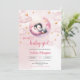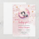 Watercolor cute penguin girl baby shower invitation