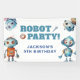 Watercolor Blue and White Cute Robot Birthday Banner.