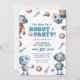 Modern Cute Robot Kids Birthday Invitation.