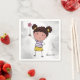 Watercolor Cute Stick Girl pink Flower Beautiful Napkin