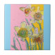Watercolor Daffodil Flower Floral Pink Yellow Blue Tile