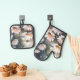 Pretty floral oven mitt and pot holder set with watercolor daisies. Customise your name on the front of each of them.