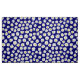 A repeating pattern made up of many hand painted daisies on a deep navy blue background.