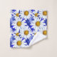 Towel set in a watercolor pattern of white daisies with golden yellow centres, on a background in shades of denim blue