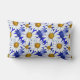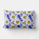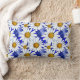 Watercolor Daisies on Denim Blue Lumbar Cushion