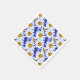 Paper napkins in a watercolor pattern of white daisies with golden yellow centres, on a background in shades of denim blue