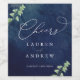 Watercolor Dark Blue Greenery Wedding Wine Label