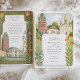 Celebrate your wedding in beautiful Darmstadt, Germany with this romantic watercolor wedding invitation featuring iconic landmarks like the Hochzeitsturm and Russian Chapel. Framed with Art Nouveau floral details in soft pastels, this invitation design evokes the charm and elegance of European architecture and decorative arts. Ideal for a destination wedding with a refined, artistic aesthetic.