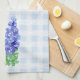 Watercolor Deep Blue Delphinium Pale Blue Gingham Tea Towel