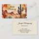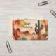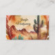 Business cards with a beautiful painted illustration. Green cacti and brown mountains in the background. Scenic pretty southwest design.