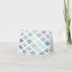 This original watercolor design features soft pastel colours in a diamond window pane pattern. This note card can be personalised with a name. The typography is placed in the white window pane on a diagonal. Colours are shades and tints of blue with some purples.