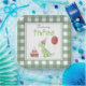 Watercolor kids birthday party. Watercolor Dino in birthday hat, cake with candles, red balloon. Green cage background.