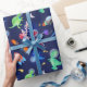 Watercolor Dinosaur Astronauts In Space Blue. Tyrannosaurus Rex, Brontosaurus, Pterodactyl, and other dinosaurs in outer space. Kids fun dino space pattern. Personalize with name.