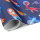 Watercolor Dinosaur Astronauts In Space Blue Wrapping Paper