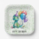 Watercolor Dinosaur Balloons Boy Birthday Party Paper Plate