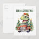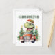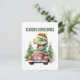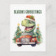 Watercolor dinosaur Christmas car Holiday Postcard