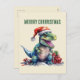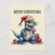 Watercolor dinosaur Christmas Santa Holiday Postcard