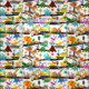 Watercolor Dinosaur Construction Kids Cute Pattern. Fun dinosaurs doing roadwork.