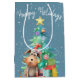 Watercolor Dog and Christmas Tree Medium Gift Bag