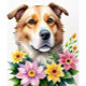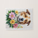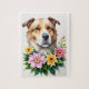 Colourful Flowers Brown and White Dog Jigsaw Puzzle
