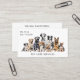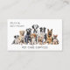A dog and pet care services business card. Perfect for a dog walker, dog boarder, dog sitter or doggie day care. On a white background, watercolor images of a pack of nine dogs including a beagle, Dalmatian, labrador, border collie and German shepherd are shown. Personalize by adding your business and contact details to the front and back.