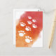 Watercolor dog paw tracks in white, red and orange with paint splatter effect applied to the image. Custom postcards with original design. Gift idea for dog lovers.