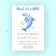 A little one on the way with this under the sea themed baby shower invitation, featuring baby dolphin in soft blue watercolors. Watercolor water bubbles.