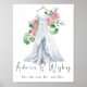 Celebrate the bride in style with pink flowers and wedding dress bridal shower invitations. This beautiful design features elegant watercolors eucalyptus leaves, pink roses and wedding dress. Order yours today! Matching items available!