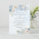 Watercolor Dusty Blue Flowers Roses Wedding Invitation
