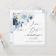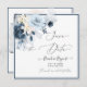 PixDezines watercolor flowers in dusty slate blue, and navy blue, accented with tiny blush pink floral. Save the Date with modern calligraphy script.