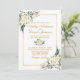 Watercolor Ivory White Floral Greenery Wedding Invitation Card includes ivory cream white roses and botanical greenery. Gold Frame, Gold Script, Photo Back