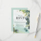 Elegant green wedding response cards featuring a faded watercolor washed out backdrop, botanical eucalyptus leaves, splashes of faux gold foil, and a simple wedding rsvp template.