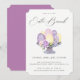 Watercolor Easter Egg and floral display, Easter Brunch invitation. Back of card features coordinating solid purple colour.