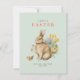 Send Easter greetings to your loved ones with this beautiful watercolor Easter card featuring a bunny, chicken, and flowers in soft pastel colours. This card is perfect for adding a touch of joy and beauty to your holiday greetings.