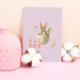 The adorable bunny and chicken, along with the delicate flowers, are painted in soft, pastel colours that are reminiscent of the spring season. The watercolor technique gives the design a charming, whimsical feel that is sure to bring a smile to anyone's face.
