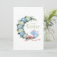 Watercolor Easter Hydrangea Wreath Cute Bunny Holiday Card