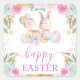 Watercolor Easter Rabbit and Flowers Square Sticker