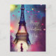 Watercolor Eiffel tower valentine Holiday Postcard