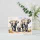 This elegant postcard pictures a majestic elephant family trekking across the African savannah, in soft blue and warm gold tones. The wildlife illustration captures the strength and bond of the herd, making it a perfect choice for personalized family stationery. Customize the text below the picture to feature your family name, a thoughtful greeting, or a "thank you" message. From sending a note to a loved one to looking for a safari-themed baby shower card, this watercolor-style postcard offers a unique, artistic touch.