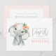 Watercolor elephant little girl birthday party invitation. With delicate pink and white polka dot details. Part of a collection.