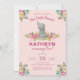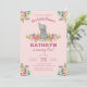 Watercolor Elephant Pink Floral Girl 1st Birthday Invitation