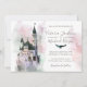 Beautiful watercolor Enchanted magical castle fairytale wedding invitation. Perfect for a dreamy storybook wedding.