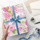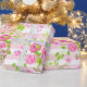 Watercolor English Roses Pink White Stripes Wrapping Paper