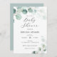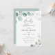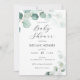 Baby Shower invitation featuring watercolor wreath of eucalyptus leaves and greenery. Customise with your event details to celebrate the mum to be.