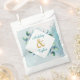 Personalised wedding favour treat bags with a watercolor Eucalyptus greenery botanical theme. Pretty pale sage green, blue, gold and white.