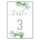 Watercolor eucalyptus. Elegant script wedding Table Number